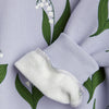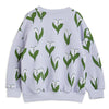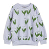 Blue sweatshirt with all over Lily of the Valley print, made from 100 % GOTS certified organic cotton. The sweatshirt is designed with slightly dropped shoulders for a relaxed fit as well as rib at the neck, sleeve ends and bottom hem.